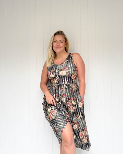 The fabric is different in a good way. The brushed finish gives it a really soft feel like bamboo. I love the 3/4 length sleeve as it nicely covers the upper part of my arm but without the end of the sleeve getting in my way. I love the length which sits about mid-calf on me, and I love a dress with pockets! If I had any gripe the pockets feel a little high, I am used to wearing pants a lot where they sit lower and I keep fumbling to find the pockets in the dress. Will likely buy more in different colours/patterns should they come up in offerings I like.
