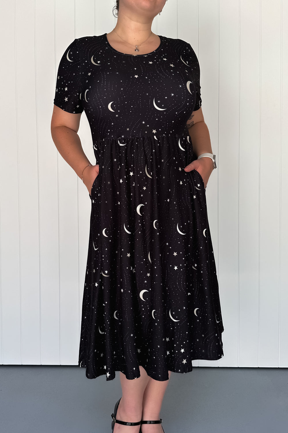 Moonbeam Nightfall - Midi Dress - Short Sleeve - Pockets