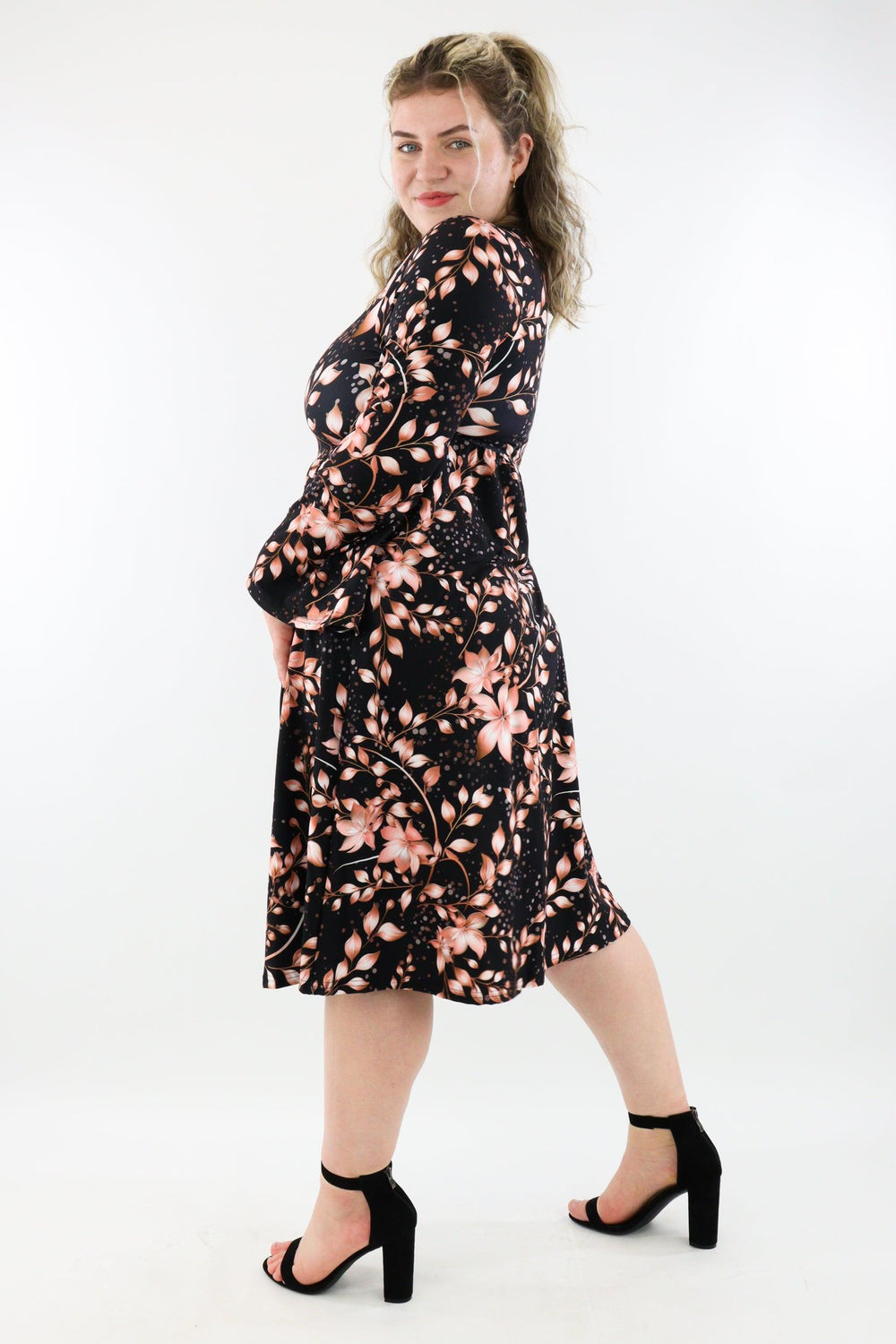 Rose Gold Oasis - Midi Length Dress - Bell Sleeve - Pockets