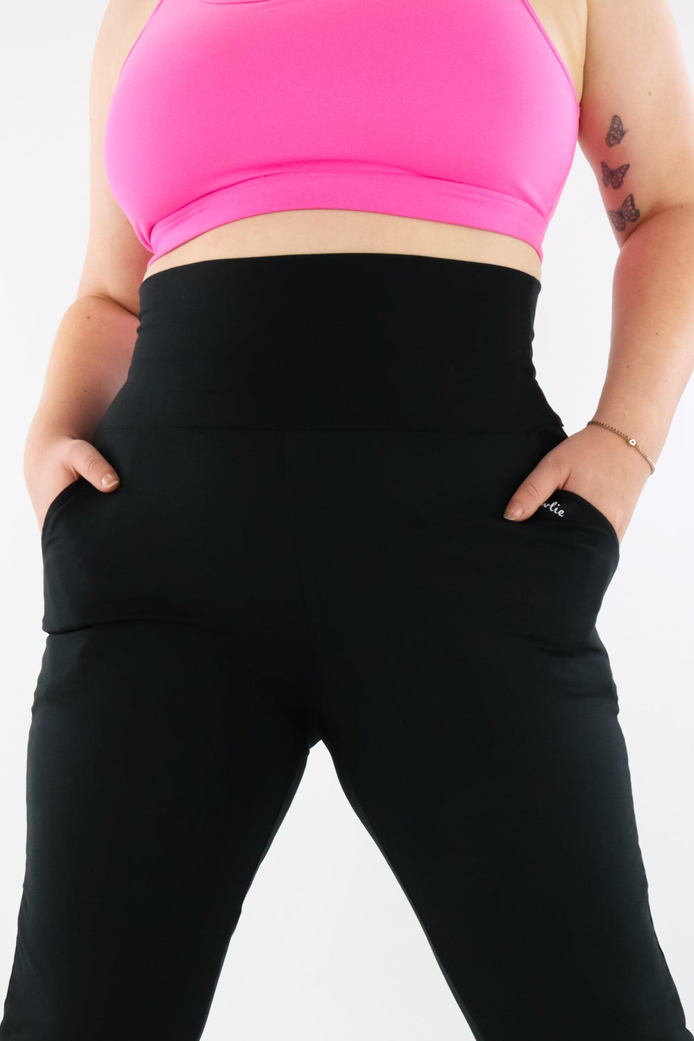 Plain Black - Flarey Leggings - Leg Pockets Hybrid Flares Pawlie