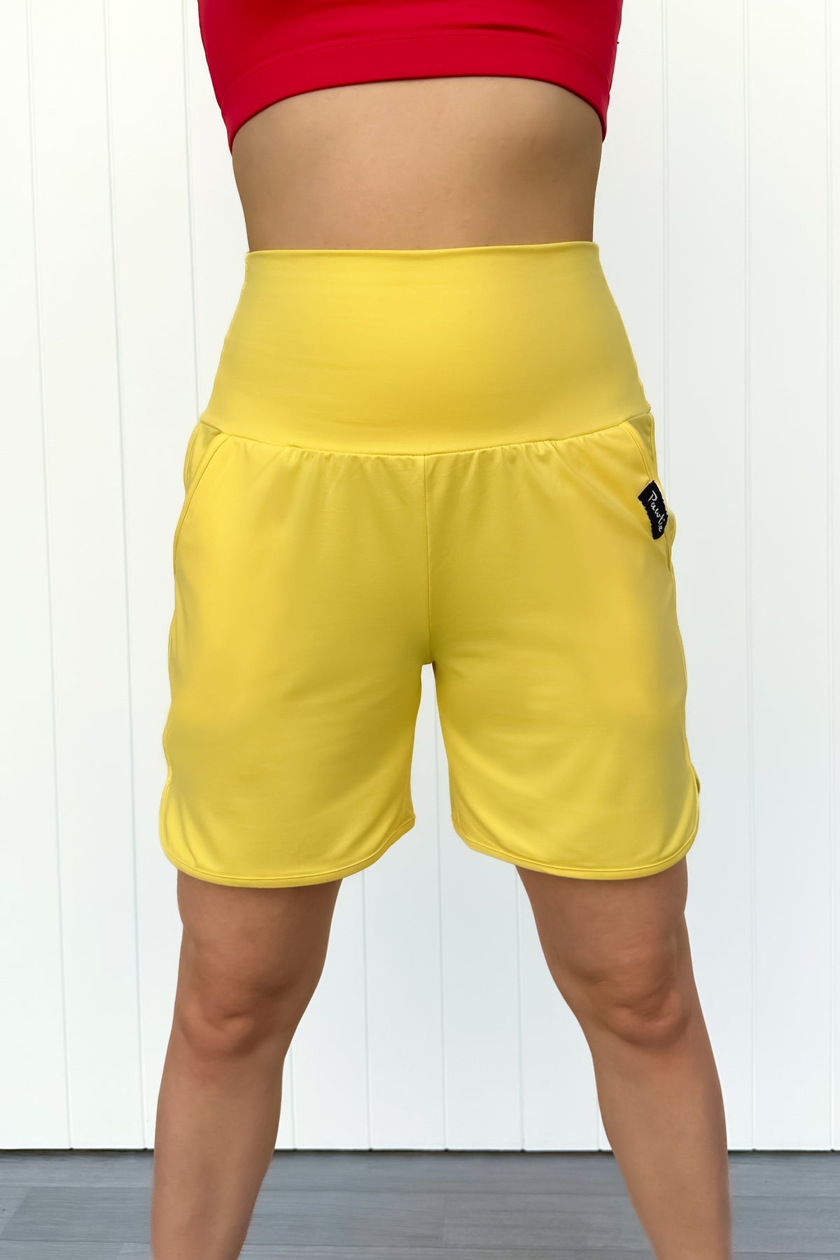 The Lemon Hybrid Pocket Jogger Shorts bring sunshine to your wardrobe with their vibrant yellow colour and super comfy fit. Smooth, stretchy and designed to move with you, these shorts are all about relaxed confidence. The wide foldable waistband stays comfy and secure, while the deep side pockets make it easy to keep essentials close and hands free.