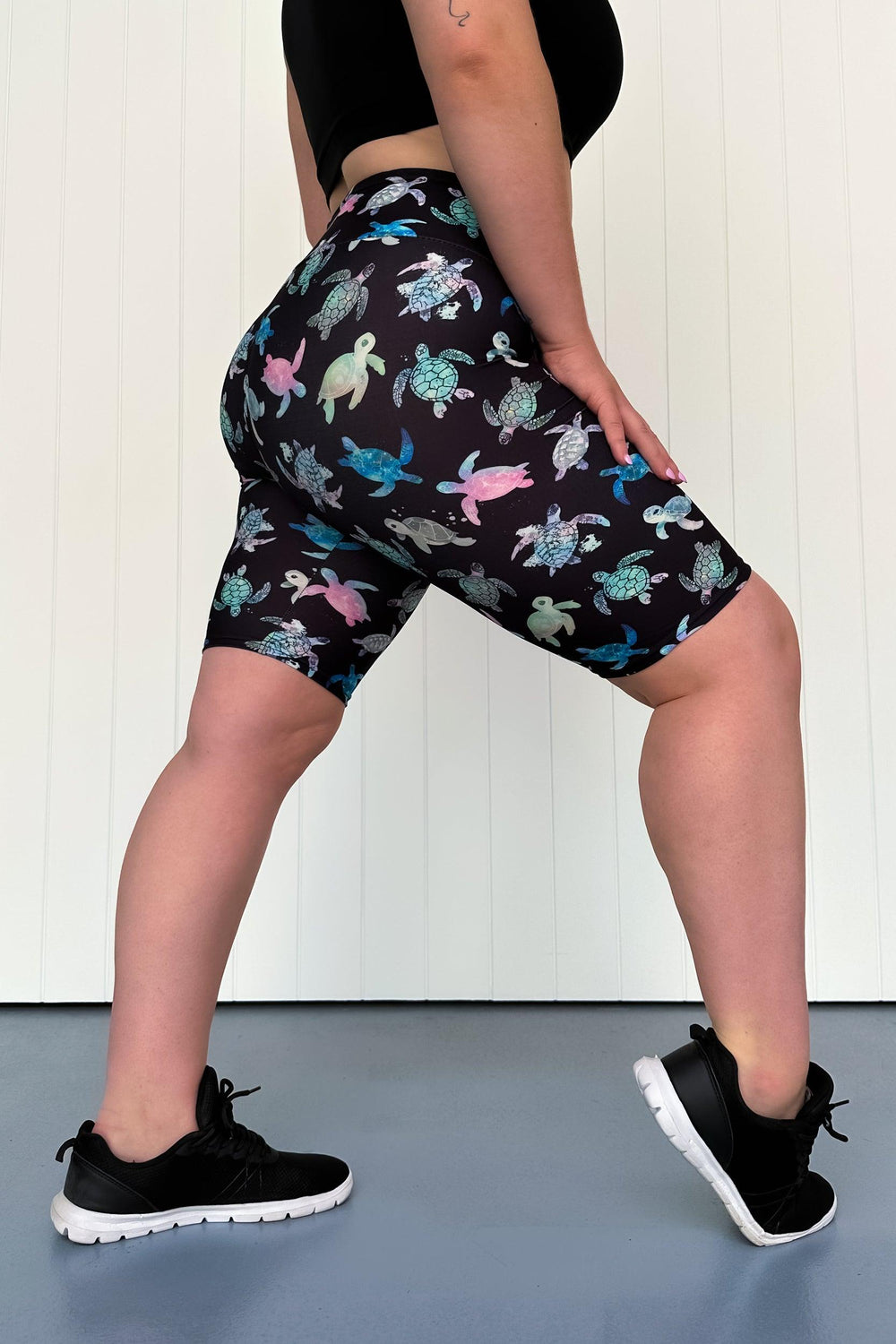 Majestic Turtles Casual Long Shorts features coloured sea turtles swimming around on a black background. Made from our signature buttery soft fabric, it'll feel like wearing nothing.