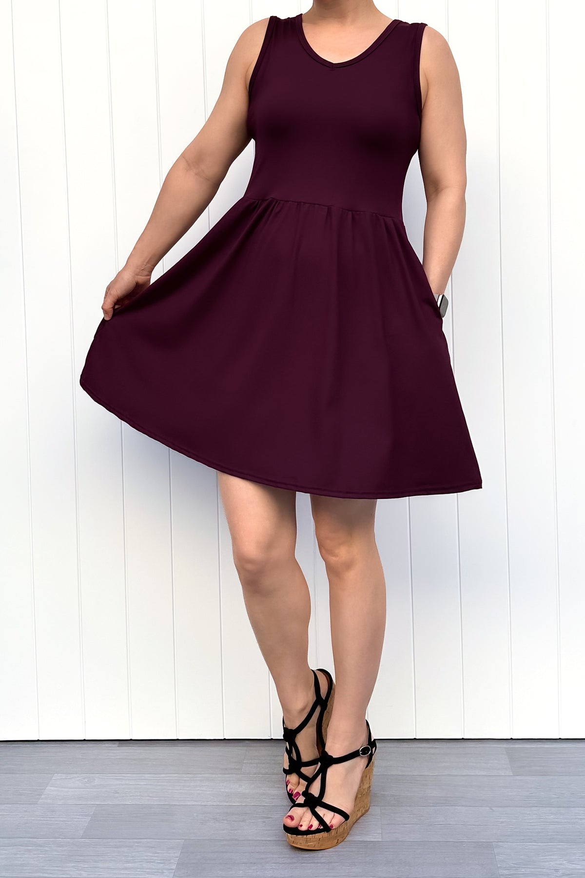 The Plum Sleeveless Mini Dress wraps you in a deep berry tone that feels warm, confident and quietly powerful. There’s something about plum that carries presence without shouting for attention, the kind of colour that makes you feel put together even on the days you’re absolutely not trying. The super soft stretch fabric glides comfortably, the relaxed vintage style gives it an easy throw on charm, and the pockets keep it practical without losing the mood.