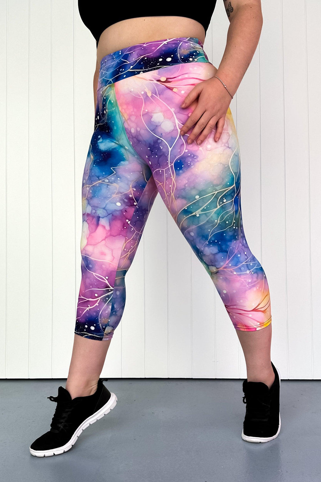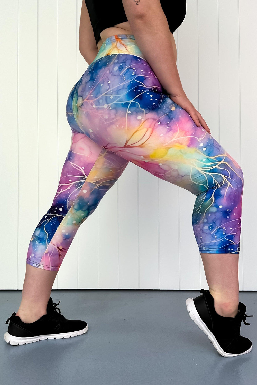 Remember those tie-dye tees you made in the backyard with rubber bands and a whole lot of hope? This is the grown-up, can actually wear outside the house version. The Spellbound Casual Capri Leggings blends vibrant colours with gentle white line detailing that feels part hand-drawn, part whimsical. It’s eye-catching in the best way, and comfier than anything you wore in the '90s.