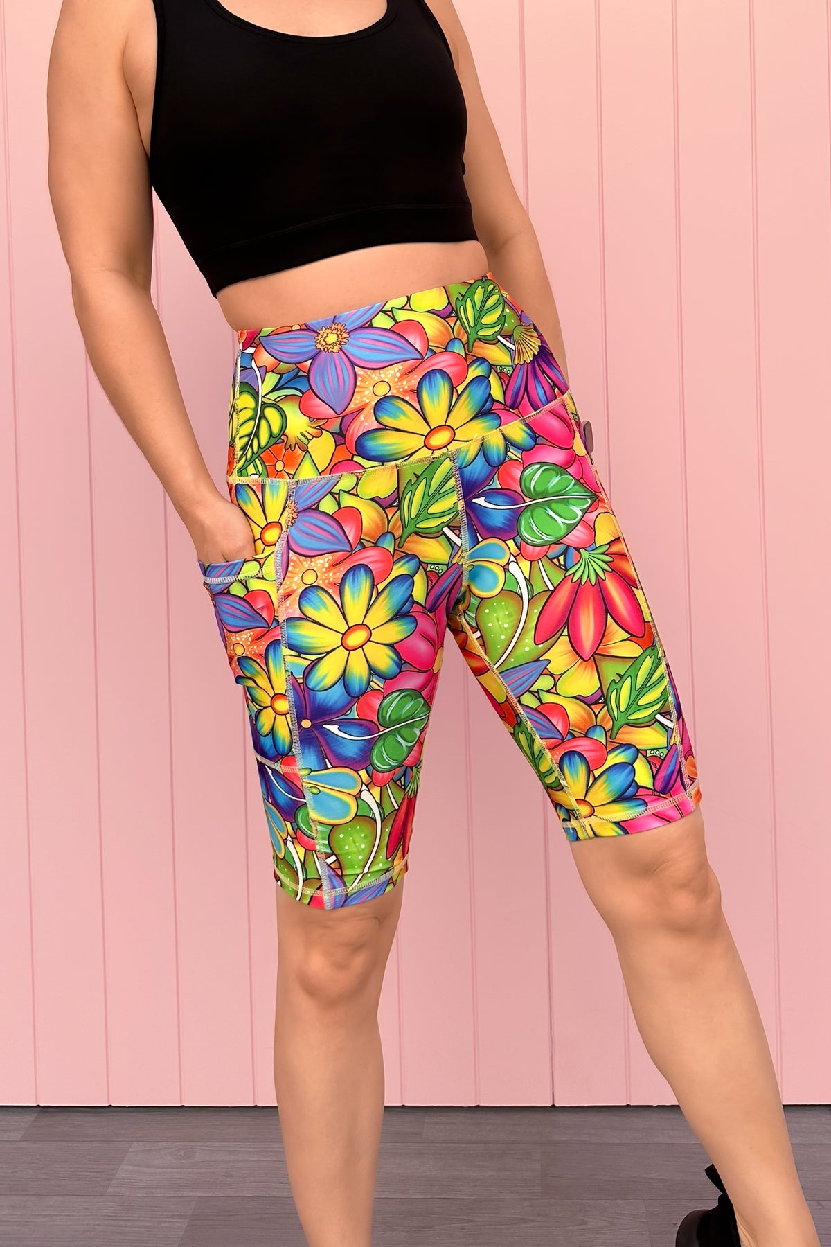 The Tutti Frutti Flora Hybrid Long Shorts are what happens when colour decides to throw a party and invite your legs. Bright petals, candy toned blooms and juicy tropical hues collide in shorts that feel cheerful, bold and unapologetically fun. The super soft stretch fabric keeps every move feeling smooth, while the high waistband holds comfortably without rolling. If your wardrobe needs a hit of instant happiness, this is your sunshine soaked pick.