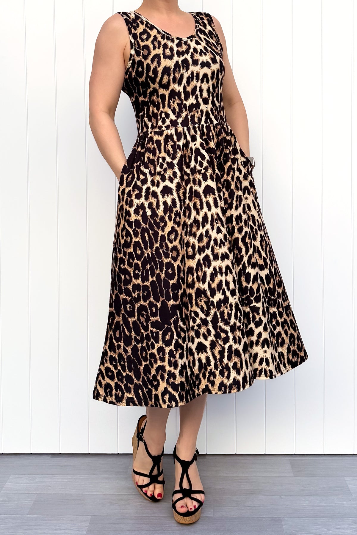 Wild Leopard - Sleeveless Midi Dress - Pockets