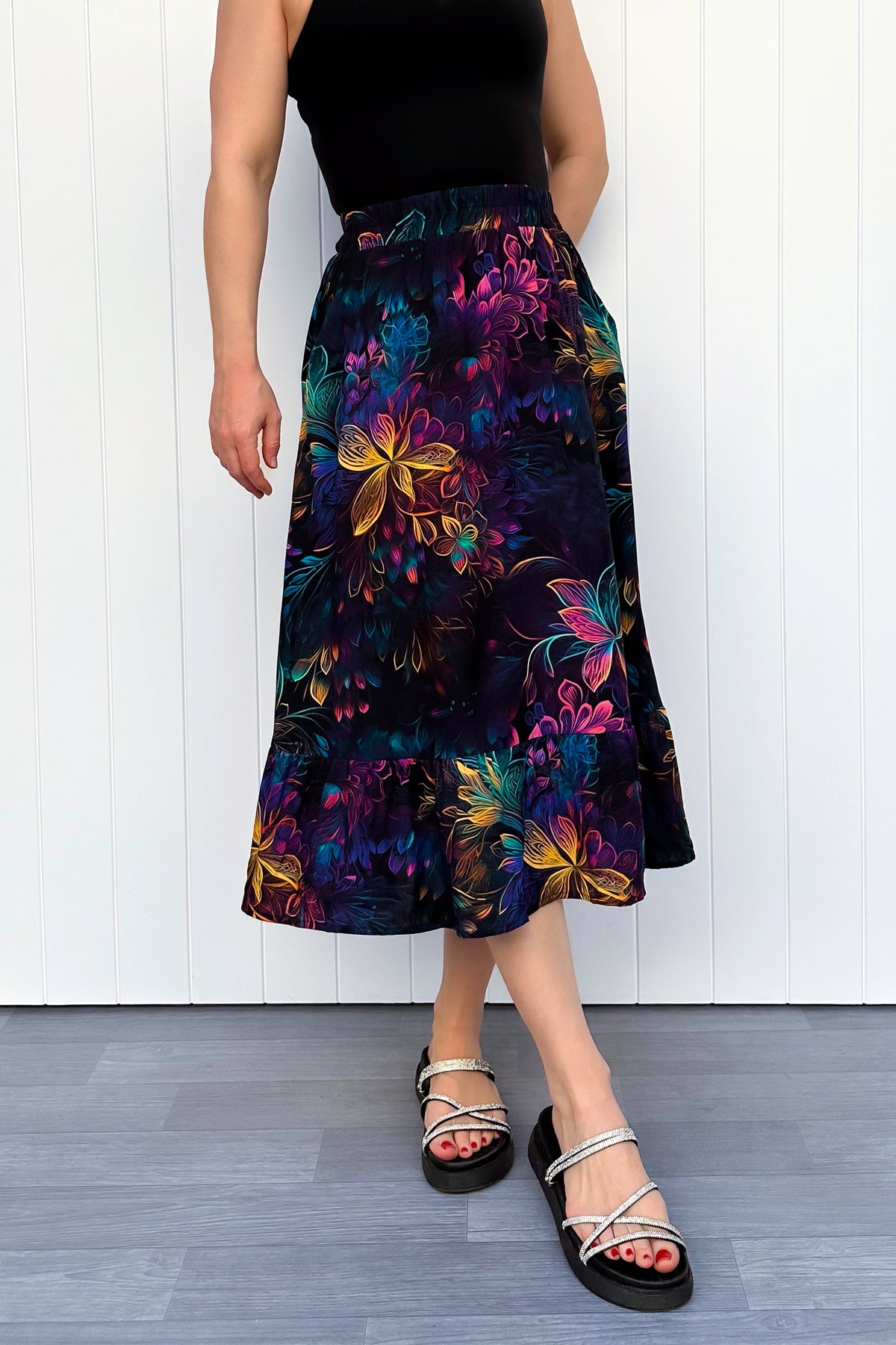 Zinnia Midi Skirt - Spectral Garden - Pockets